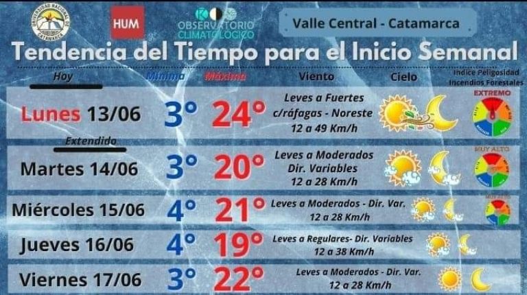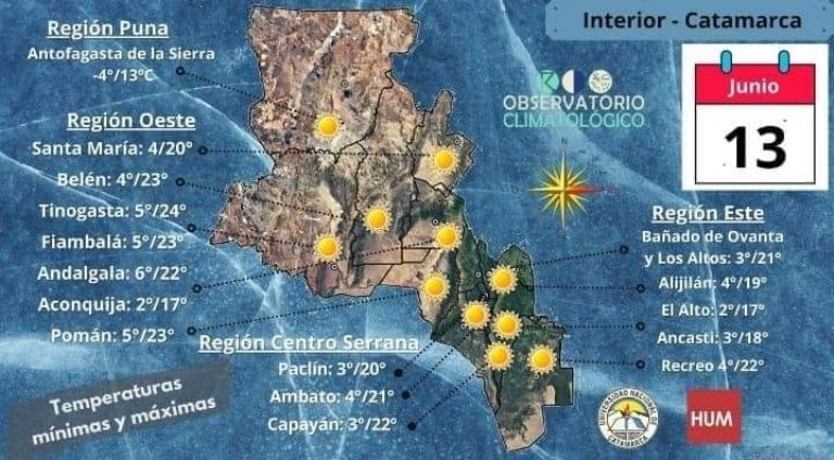En Catamarca tendremos esta semana un clima frío, que tendrá desde el lunes y hasta el viernes (feriado), mínimas que rondarán entre los 3 y los 4 grados centígrados.