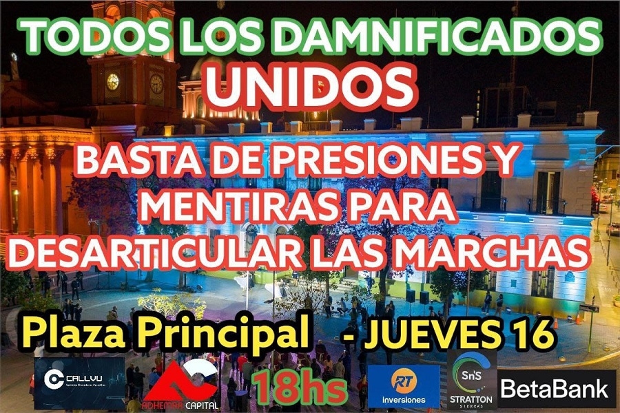 La convocatoria es para ahorristas perjudicados por las financieras Adhemar Capital, RTInverisiones, Stratton Sierra, Call Vu, y Beta Bank.