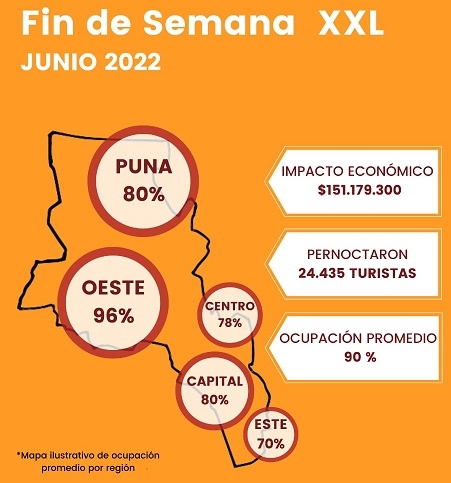 El importante movimiento turístico incluyó el pernocte de 24.435 turistas, y tuvo su correlato económico en toda la cadena de valor que genera la actividad, desde alojamiento, gastronomía, servicios turísticos, artesanías, transporte y comercio en general.. Así, con un gasto promedio diario de $6.180 por persona, el impacto económico total que dejó el fin de semana XL en Catamarca es de $ 151.179.300.