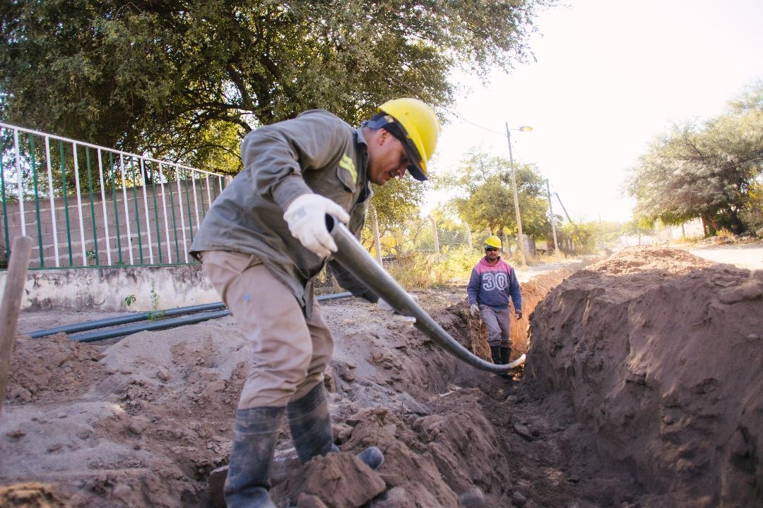 Se instalaron más de 100 metros de cañería de red PVC 75 mm. sobre pasaje El Canillita y conexiones domiciliarias con proyección para futuras instalaciones en el sector.