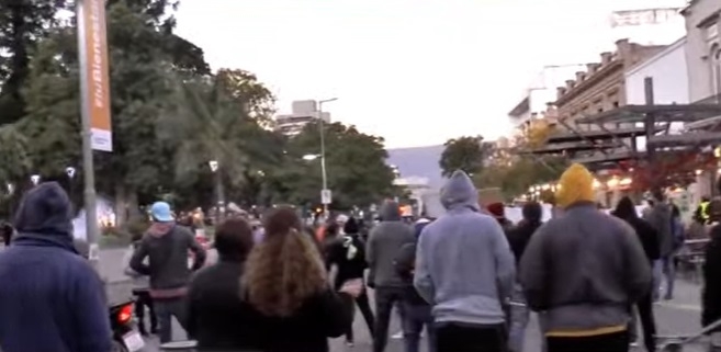 La movilización se lleva a cabo por el centro de la ciudad, y genera un caos vehicular debido a que se concreta en una hora pico de circulación.