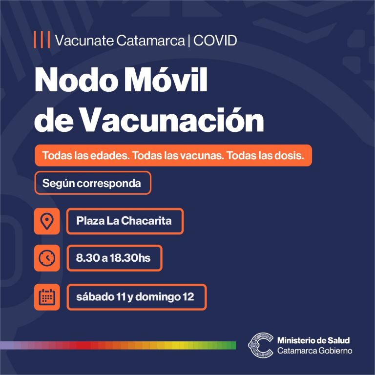 Durante el fin de semana, el sábado 11 y domingo 12 de junio, se llevará a cabo un operativo de Vacunación en la Plaza de La Chacarita, de 8.30 a 18.30 horas, para que las vecinas y vecinos de la zona completen sus esquemas de vacunación Covid.
