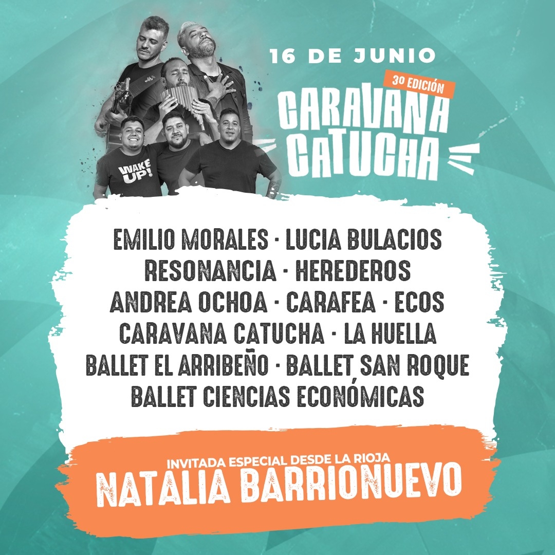 El jueves 16 de junio, desde las 22, se realizará la tercera y última edición de la peña “Caravana Catucha, Camino al Poncho”. En esta oportunidad la propuesta se muda a Club Américo Tesorieri, en avenida Belgrano 960, y contará con la participación de la cantante riojana Natalia Barrionuevo como invitada especial.