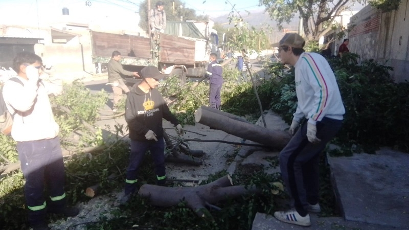 Intervienen cuadrillas de la Secretaría de Ambiente que conduce Fernando Castillo y la Secretaría de Servicios Ciudadanos que comanda Martín Barrionuevo, en colaboración con personal de Defensa Civil.