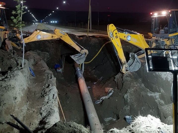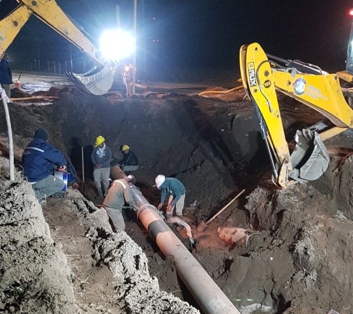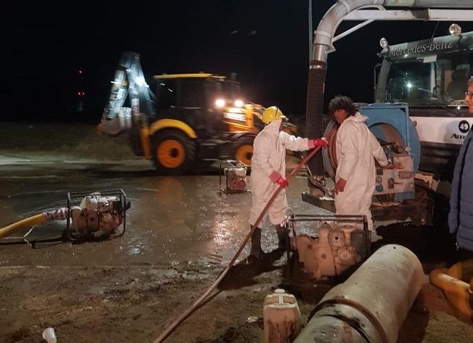 A su vez, se informó que se trabaja en la reparación de un tramo de la red de impulsión de Calle Junín.