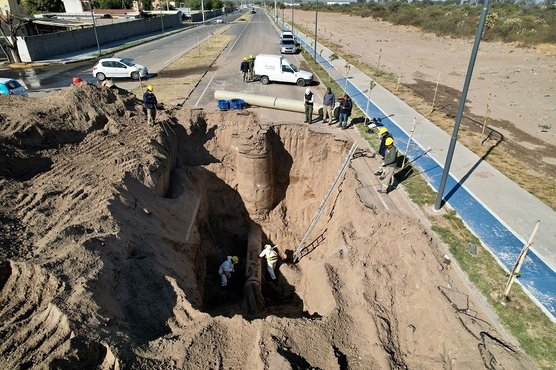 Personal de la empresa continúa trabajando en la reparación y desobtrucción de la red colectora cloacal en el sector mencionado.
