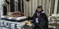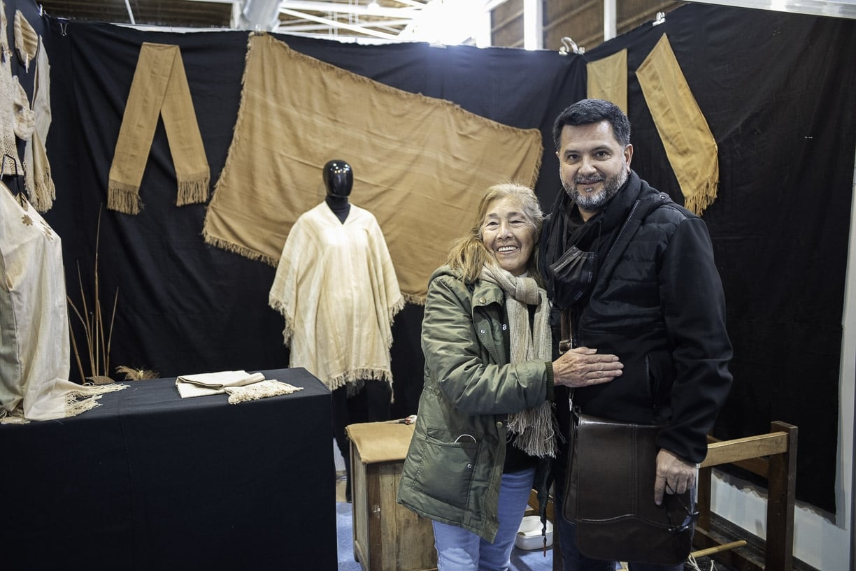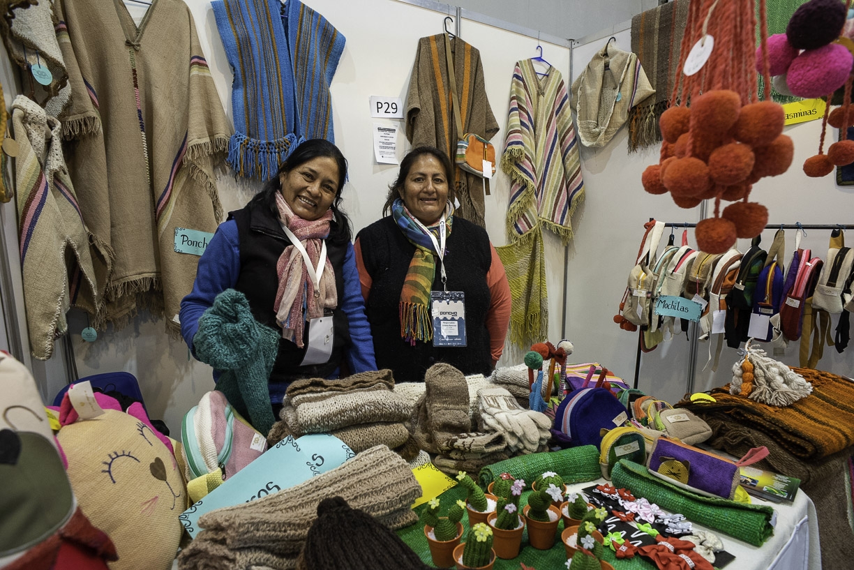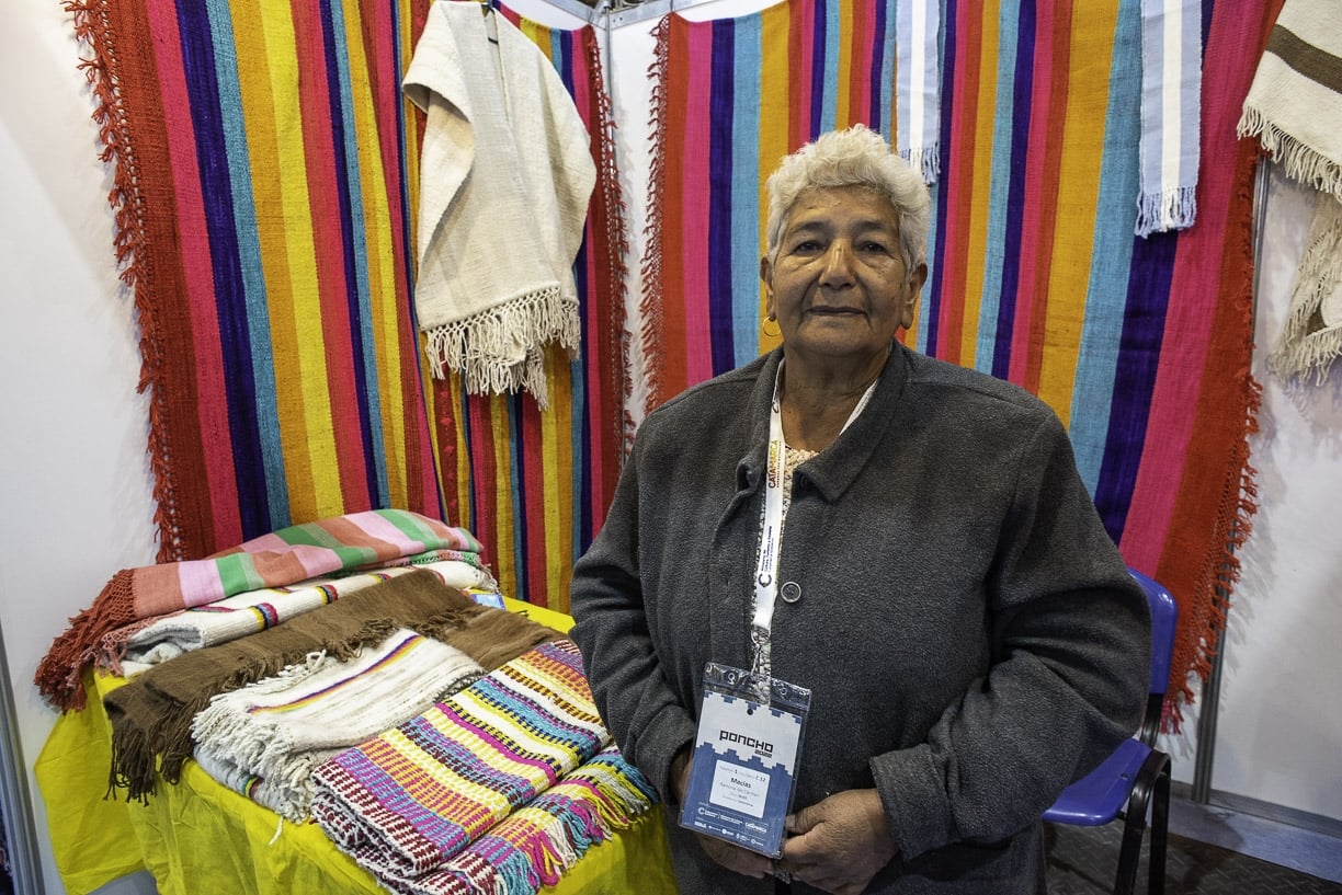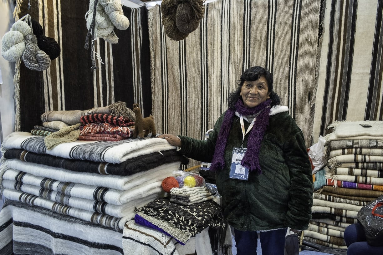 Textiles en lana de llama, oveja y vicuña como mantas, puyos, chales y los clásicos ponchos se exhiben para las personas que recorren las instalaciones del Predio Ferial.