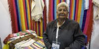 Ramona Macías es otra de las tejedoras de Belén que llegó cargada de mantas coloridas, teñidos con tintes naturales, y los clásicos puyos en la gama de los blancos y marrones. Los elabora en un telar criollo instalado en el patio de su casa, donde día a día va armando la trama hasta obtener el resultado final.