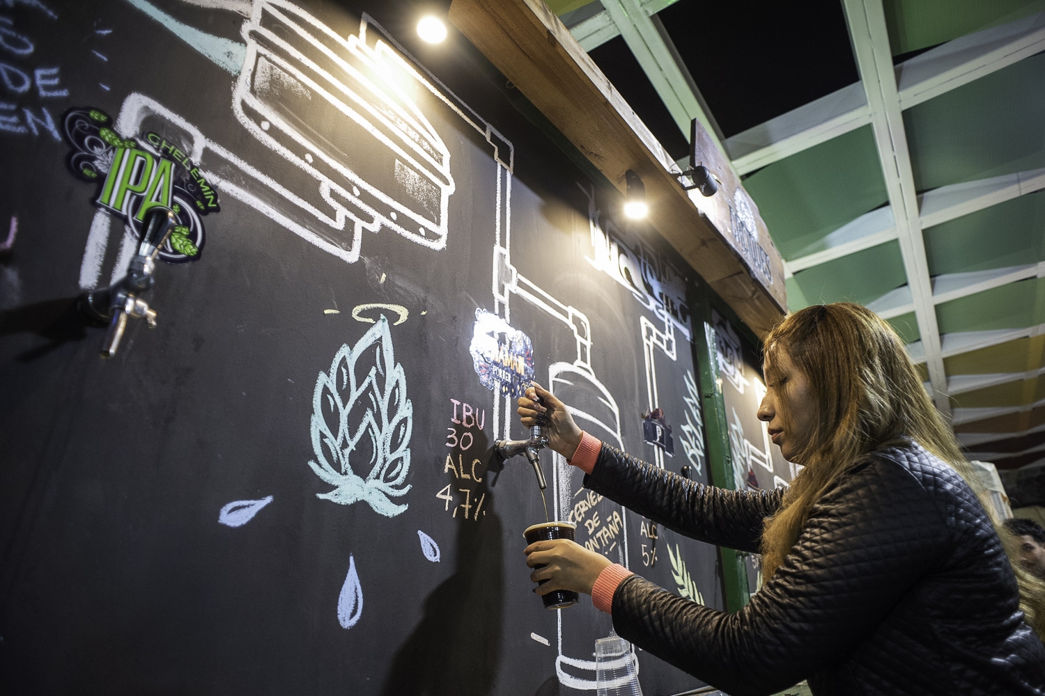 No faltan las pizarras escritas con tiza, otro dispositivo característico de las cervecerías, con la información de cada puesto. El precio de las pintas para tomar en el lugar se estableció en 500 pesos, pero algunos tienen la opción de comprar packs de cervezas en botellas de distintas capacidades hasta los growlers, esos botellones de vidrio retornable que permite transportar la cerveza servida directamente del barril.