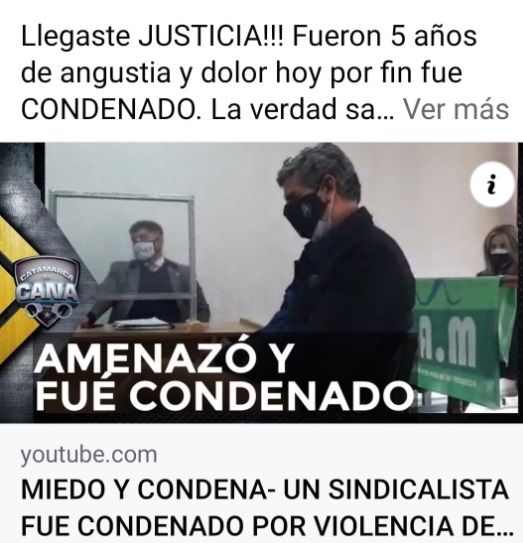 "Hoy, nos sentimos nuevamente revictimizada como Institucion que luchamos por los derechos de las mujeres al ver que la persona ERNESTO PAZ que fue denunciado hace unos años por violencia de genero, a traves de amenazas de muerte, que tiene condena con sentencia firme se presenta nuevamente como candidato gremial en el sindicato de Trabajadores de la Industria de la Alimentación en Catamarca .