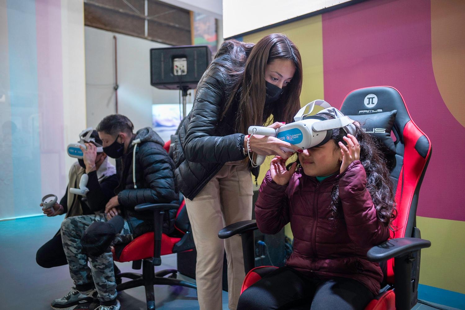 Dentro de su trailer Con+ciencia, un espacio de aprendizaje en movimiento que pretende llegar a todo el territorio de la provincia con sus capacitaciones, hay un ambiente preparado para brindar recorridos por edificios y paisajes locales sin moverse del Predio Ferial.