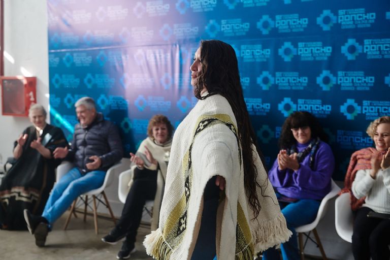 Premio adquisición Mejor Poncho 2022: Cyntia Gutiérrez de Laguna blanca, Belén.