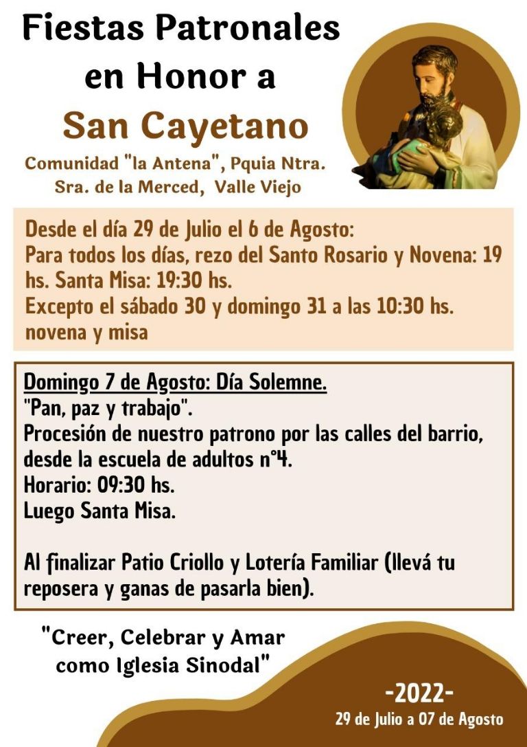 El domingo 7 de agosto, a las 9.30, se dará inicio a la procesión con la imagen del Santo Patrono por las calles del barrio, partiendo desde la escuela N° 4.