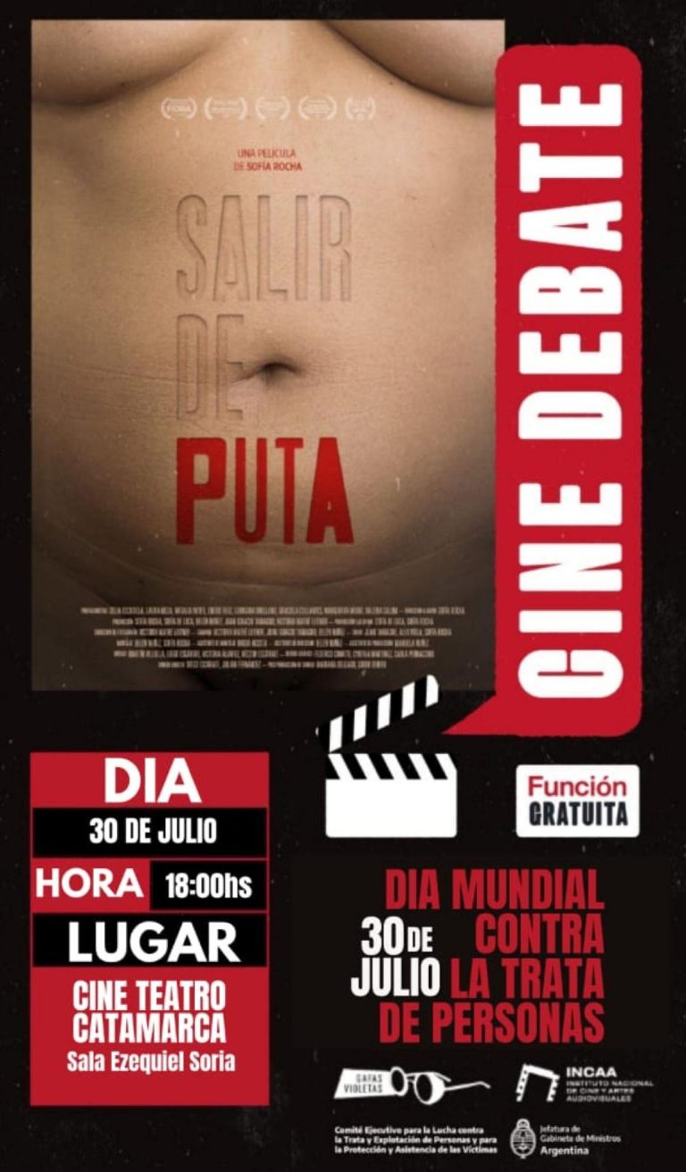 La actividad es organizada por el comité nacional para la Lucha Contra la Trata de Personas y el programa Gafas Violetas del INCAA, con la participación del Ministerio de Cultura, Turismo y Deportes a través del espacio INCAA Catamarca, convirtiéndose en un momento de debate a partir de la proyección de la película, ya que estará presente la realizadora y un representante de Gafas Violetas.