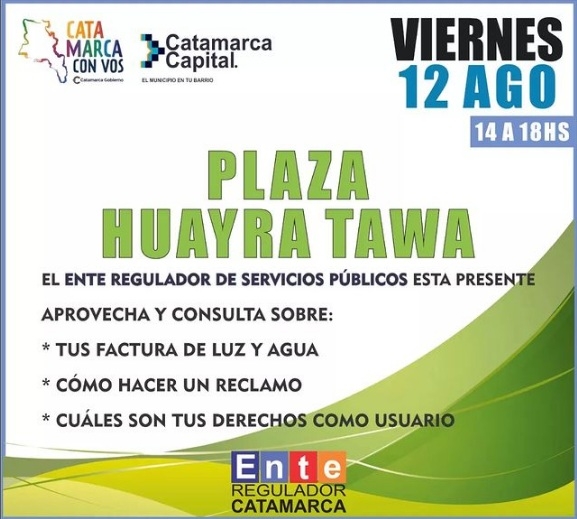 Las actividades se desarrollarán en la Plaza Huayra Tawa, el viernes 12 de Agosto de 14 a 18 horas, donde personal técnico del organismo estará presente junto a otras áreas gubernamentales provinciales y municipales.