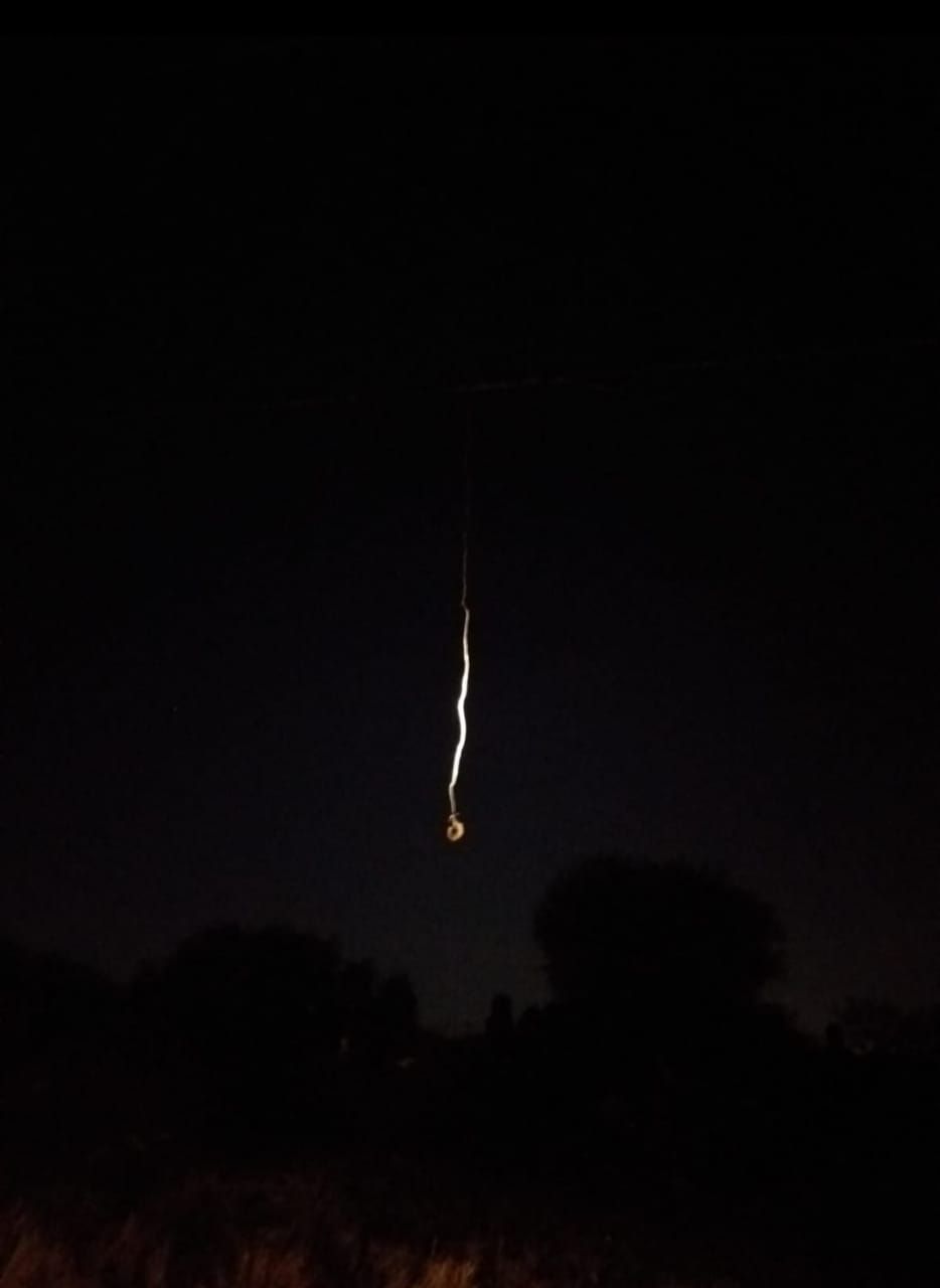 Ahí fue cuando descubrieron cerca del Barrio Centenario, una boleadora improvisada de alambre y piedras, enganchada en el cableado.