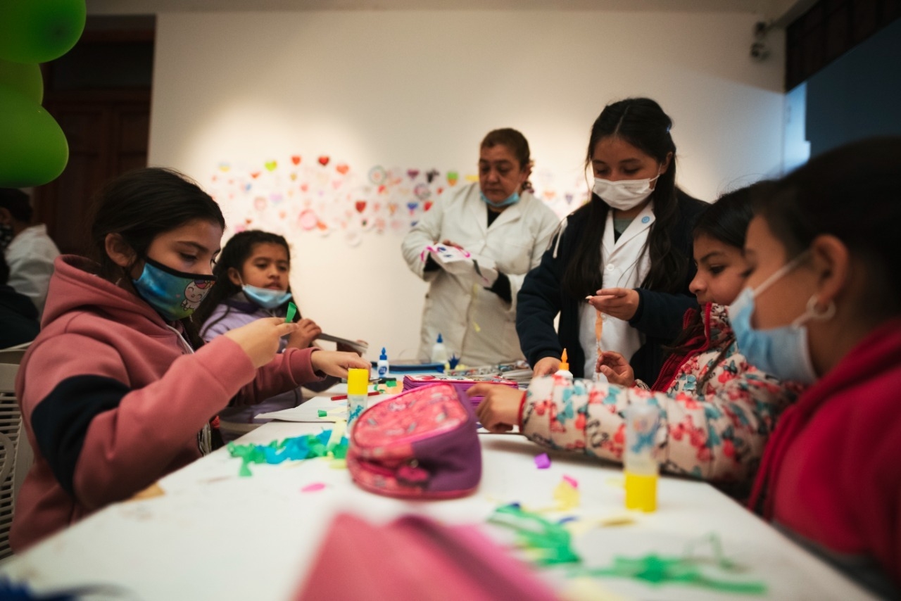 Además, en cada oportunidad, los chicos participan de la realización de un mural colectivo denominado “Corazones para las infancias”, donde cada uno de los niños y adolescentes deja su corazón, con el cual expresa sus emociones.