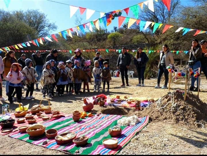 Las actividades programadas iniciaron al mediodía con la corpachada, para la cual se realizó un hueco en la tierra y los niños ofrendaron frutas, nueces, comida cocida, hojas de coca, vino, entre otras cosas. Todo el sitio estuvo decorado con gallardetes, tulmas y aguayos coloridos, junto a una muestra colectiva de murales elaborados por los diferentes jardines de infantes, con un mensaje alusivo a la fecha.