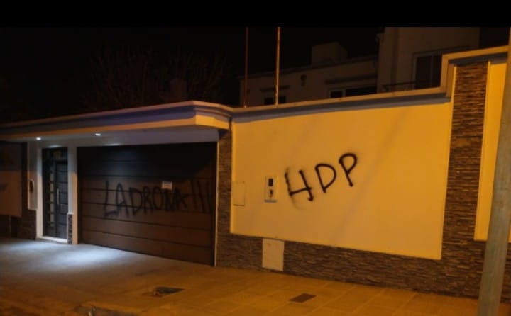También hubo pintadas en la fachada de la propiedad.