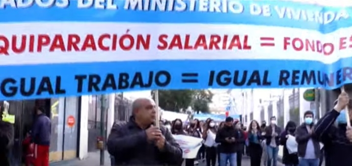 Trabajadores del Ministerio de la Vivienda y Urbanización llevan a cabo en la tarde de este lunes una manifestación y protesta por las calles del Centro de la Ciudad en reclamo de una equiparación salarial con sus pares del Instituto Provincial de la Vivienda, que perciben sueldos superiores.