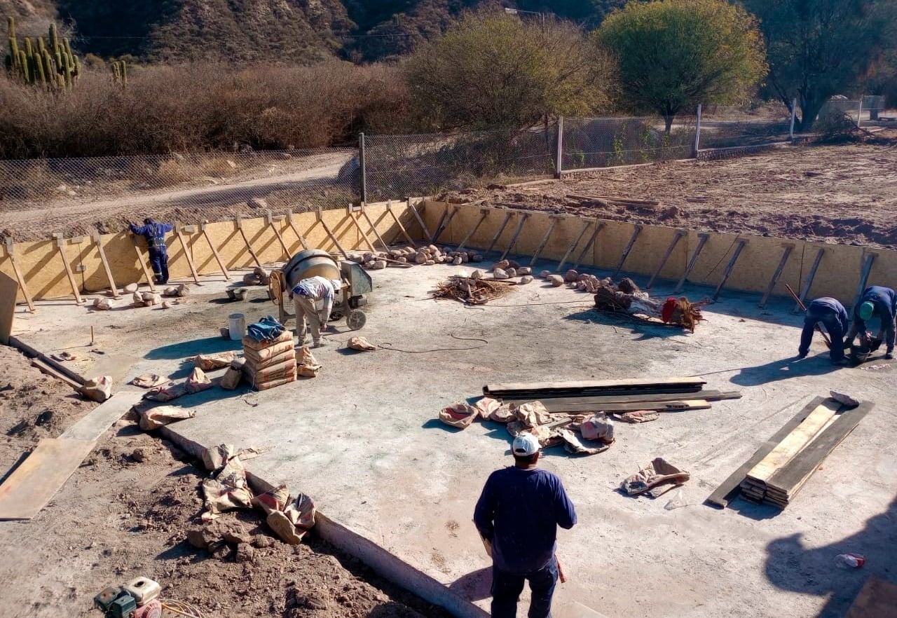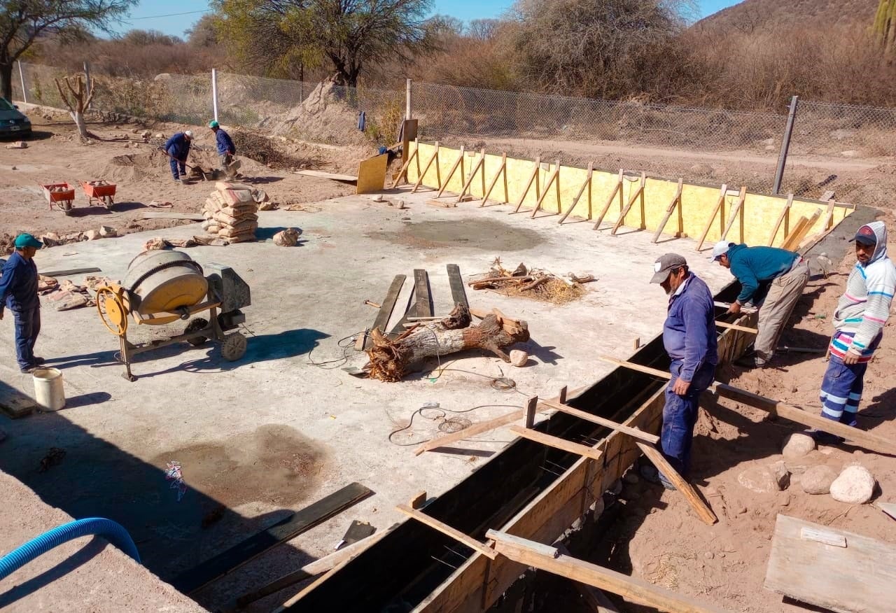 Los trabajos de mejoramiento en la Planta de El Molino consisten en la ejecución de platea de hormigón armado con una superficie suficiente para albergar 3 cisternas de PRFV de 100m3 que se encuentran montadas y conectadas 2 de ellas. En los días próximos se dará inicio a la ejecución de zanjeo y colocación de 150 mts cañería de Pvc, desde dichas cisternas hasta vincularlas a la red de distribución existente.