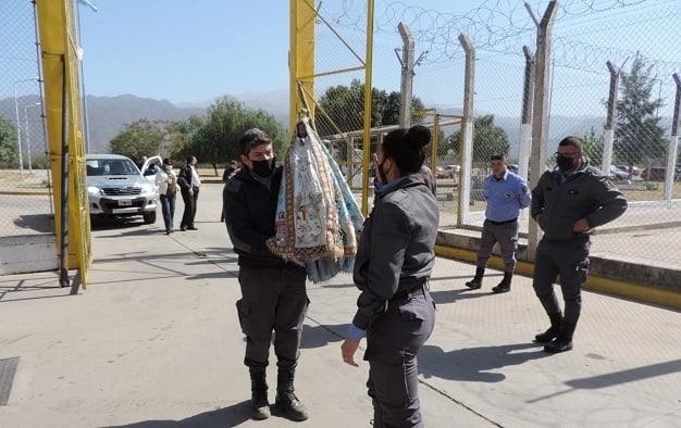 Durante estos nueve días, la imagen réplica de la Virgen Morena visita las distintas comunidades de la jurisdicción parroquial. En la primera jornada del recorrido llegó a la cárcel de varones, que le abrió sus puertas en horas del mediodía para recibir su bendición.