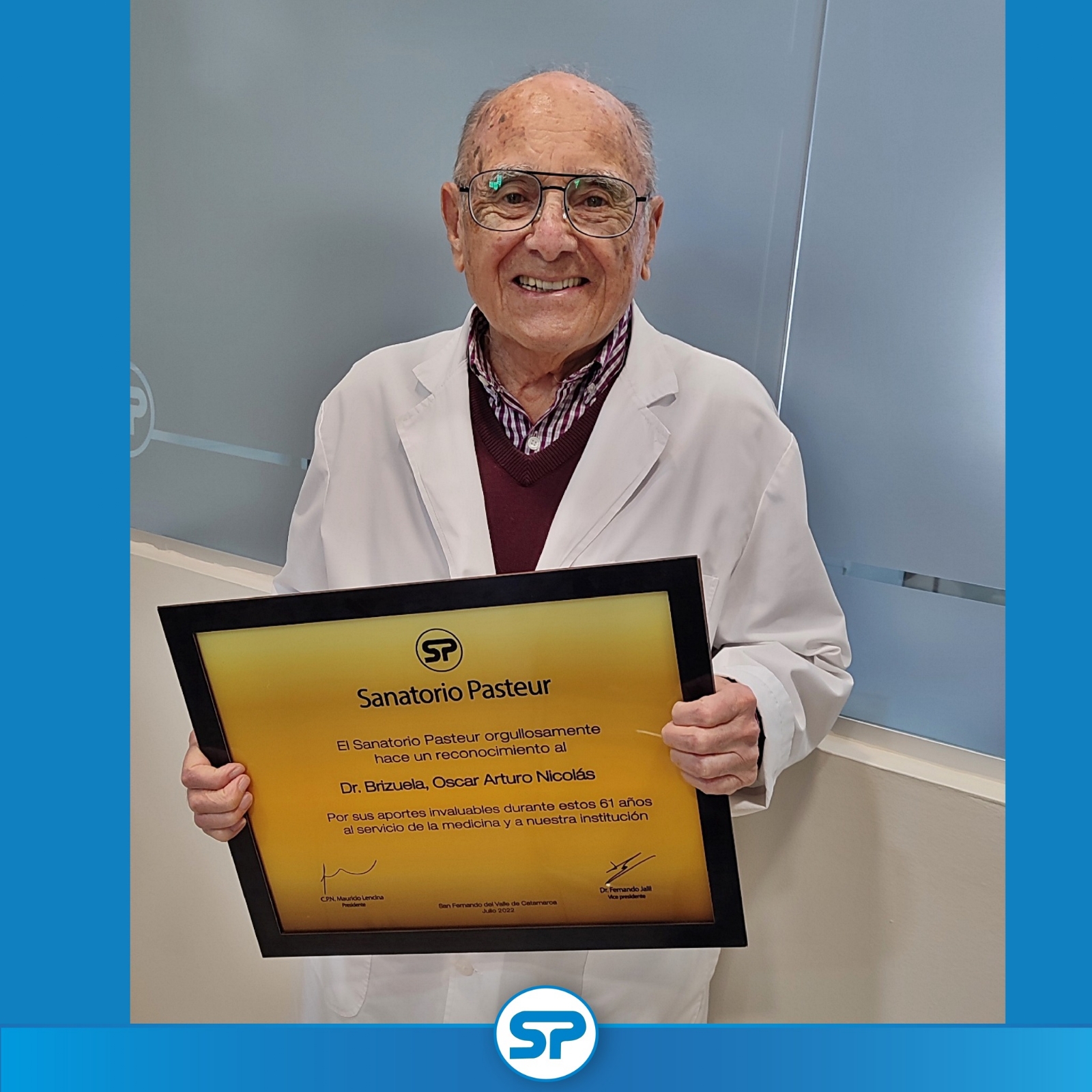 "Hoy reconocimos al Dr. Oscar Arturo "Kelo" Brizuela por haber cumplido 61 de servicio a la medicina realizando aportes invaluables a nuestra institución", reza un posteo publicado por la página del nosocomio.