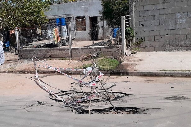 La empresa Aguas de Catamarca SAPEM informó que un vecino de Barrio Além realizó una conexión clandestina en un colector de 5 metros de profundidad generando hundimientos en la capa asfáltica.