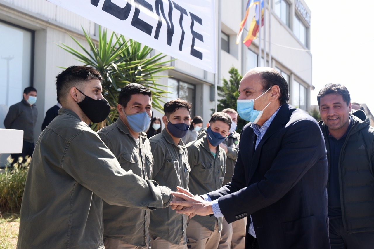 Gustavo aprovechó la ocasión para visitar la fábrica y dialogar con trabajadores y el empresario Carlos Muia, quien es también presidente de la Unión Industrial de Catamarca.