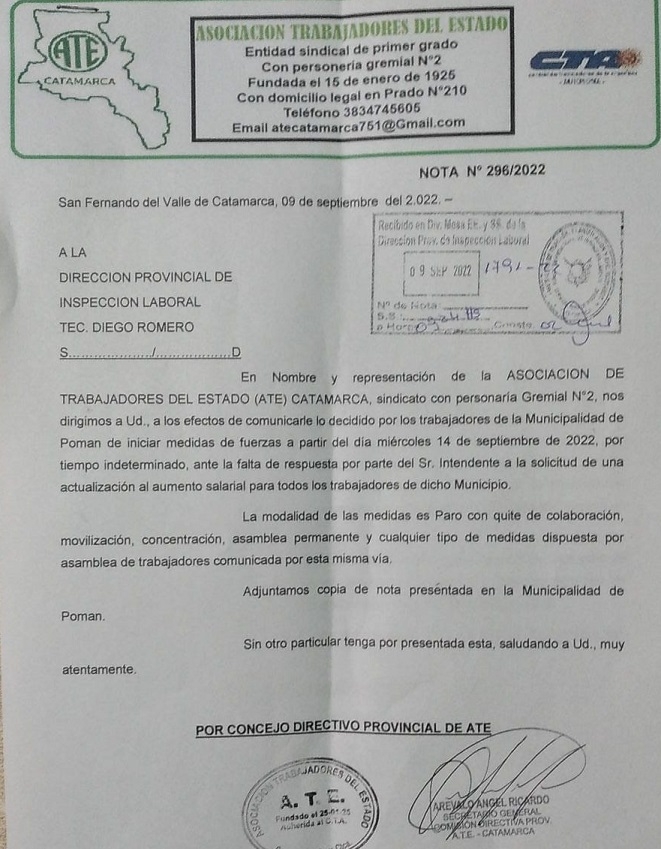 El paro es por tiempo indeterminado y además incluye la concreción de manifestaciones y estado de asamblea permanente.