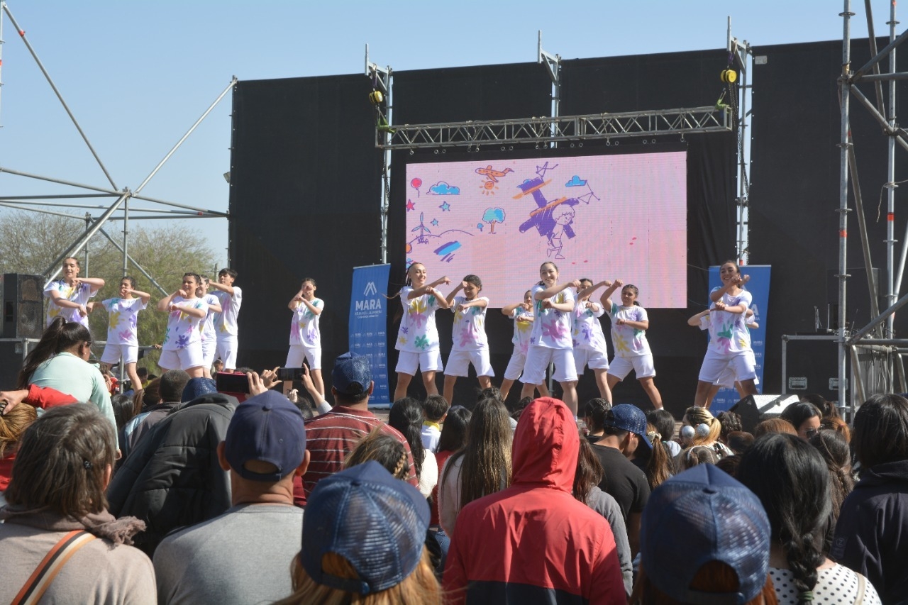 En otro sector del club Los Teros se montó un escenario gigante donde, a partir de las 15 los alumnos y el equipo de trabajo del instituto de artes Rubinstein realizaron presentaciones coreográficas, amenizadas por el animador local Johny Tapia. También se presentaron batallas de rap, free style y un show circense.