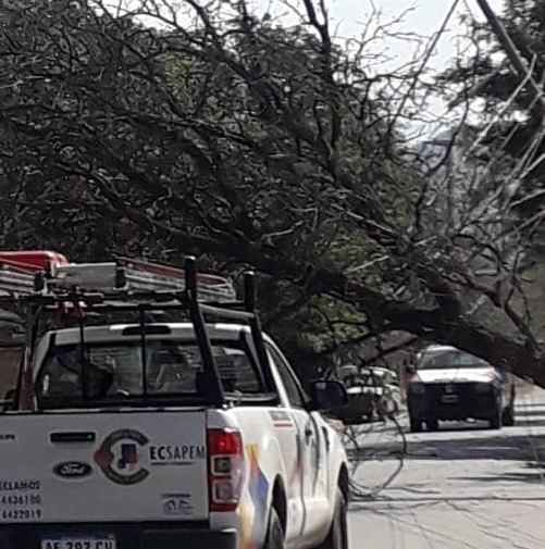 A raíz del intenso viento registrado hoy jueves hubo varios árboles y ramas caídas que provocaron daños en el tendido eléctrico en diversos lugares del departamento.