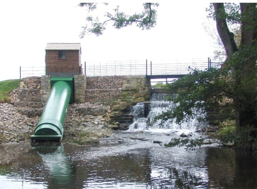 Construcción de 100 azudes de 5 m de salto, instalado hidrotornillos de Arquímides ( screw hydropower archimedean) , con mínima estructura de apoyo de hormigón generarán 9.000 Kwh equivalente al consumo de 25.920 viviendas !.