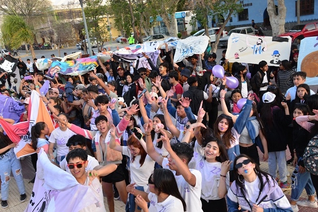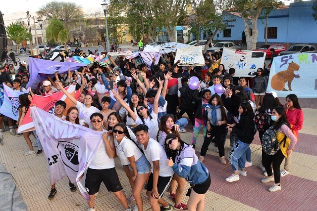 Organizado por la jefatura de la Juventud, a cargo de Eli Álvarez, estudiantes de diferentes instituciones, incluidos jóvenes de la escuela secundaria N°20 de El Cajón que arribaron días atrás caminando, festejaron su día y el recibimiento de una nueva estación.