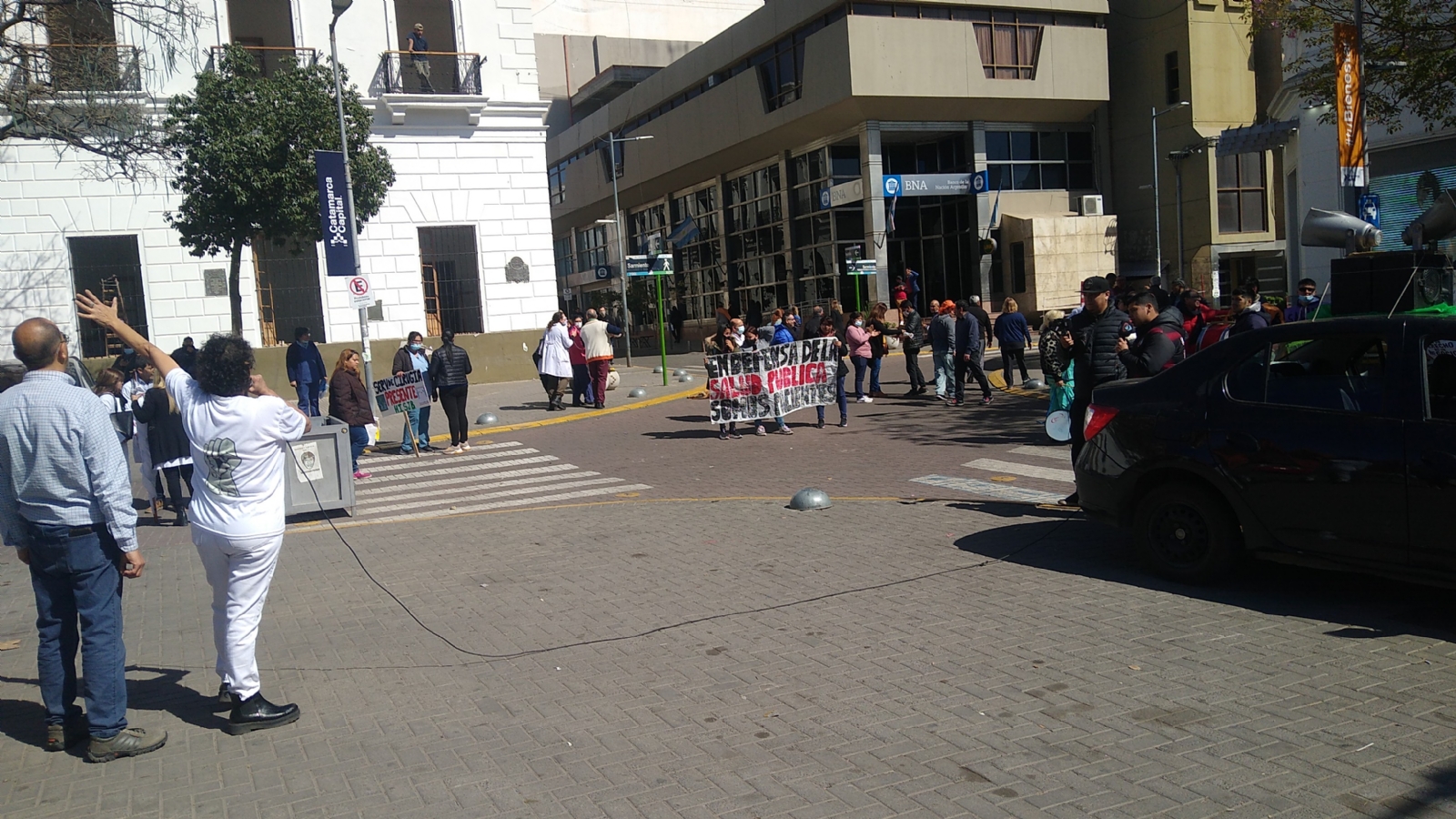 El reducido grupo en comparación con las marchas anteriores estuvo representado por Aprosca y autoconvocados qué exigen mejoras salariales para todo el personal de salud dado que el Gobierno sólo otorgó incremento a los médicos.