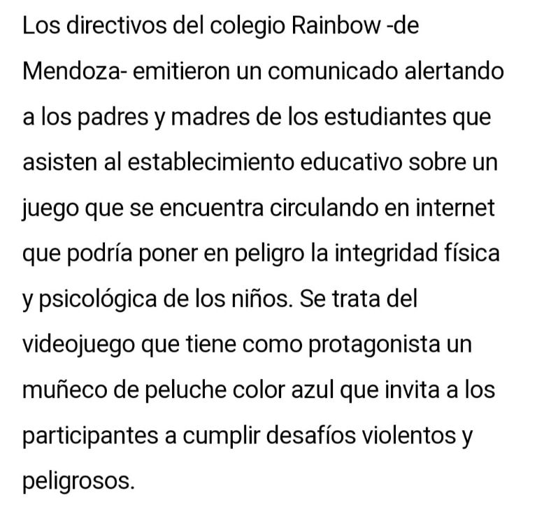 La difusión del videojuego que invita a los participantes a cumplir desafíos violentos y peligrosos alertó a las autoridades de varios establecimientos educativos.