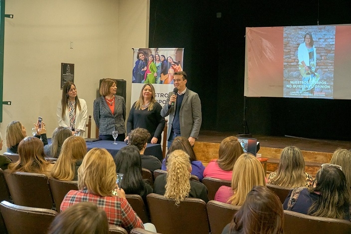 Maza, destacó que “Esta campaña no es más ni menos que un acto de justicia social. Es algo que se planeta todos los días, en cualquier escenario de la vida diaria uno vive estas situaciones de discriminación. Como profesional de la salud creo fuertemente en lo que es la prevención, pero como mujer, madre, hija, compañera y vecina, creo que tenemos que dejar de pesar en incluir, formamos parte de esta sociedad y estamos incluidos. Entonces, así como yo le agradezco profundamente a Adriana. Le agradezco a Fernando (Moguillot) y Gustavo (Saadi) por haber confiado y por haberme involucrado. Y por esto que me atrevo y me animo a pedirle a todos que se involucren y por sobre todas las cosas salgamos a la calle y salgamos a replicar este mensaje. Nuestros cuerpos no quieren tu opinión”.