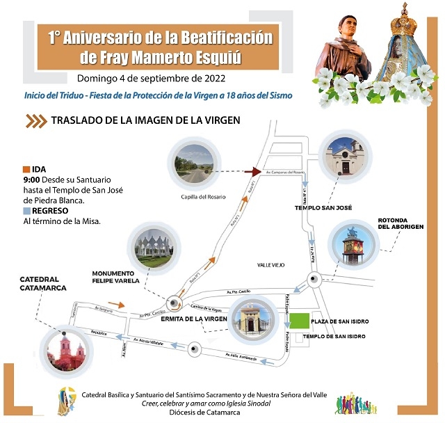 10:00- Misa Solemne por el 1° Aniversario de la Beatificación de Mamerto Esquiú. Preside el obispo diocesano, Mons. Luis Urbanc, en Piedra Blanca.