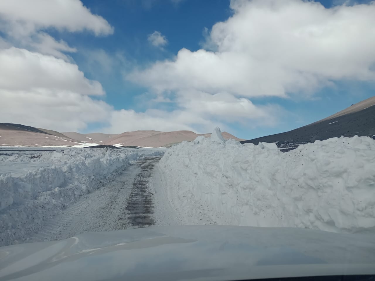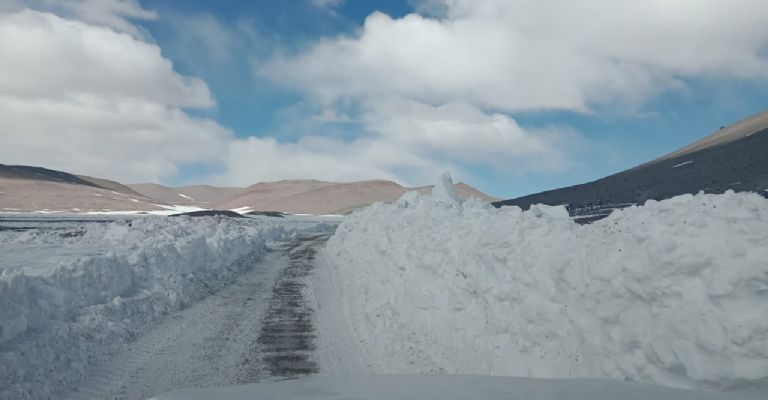 El camino poseía un tramo de aproximadamente 4 km que estaba totalmente cubierto de nieve, lo que imposibilitaba el tránsito. Si bien es una huella que siempre requiere ser recorrida con extrema precaución y vehículos acordes para ese tipo de terreno, la gran acumulación de nieve hacía imposible la circulación.