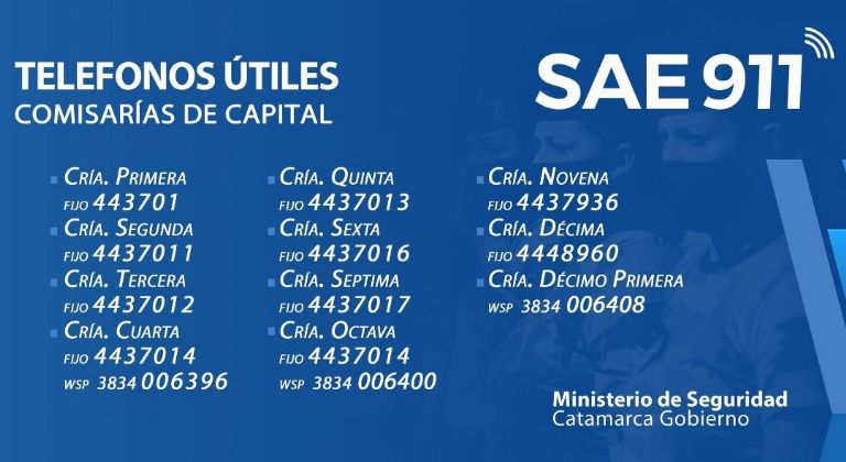 El Ministerio de Seguridad de la Provincia informa que por inconvenientes de la empresa prestadora de servicio del SAE 911, tras el fuerte fenómeno climático del pasado martes, se habilitaron líneas alternativas de comunicación para el Sistema de Atención de Emergencias (SAE)