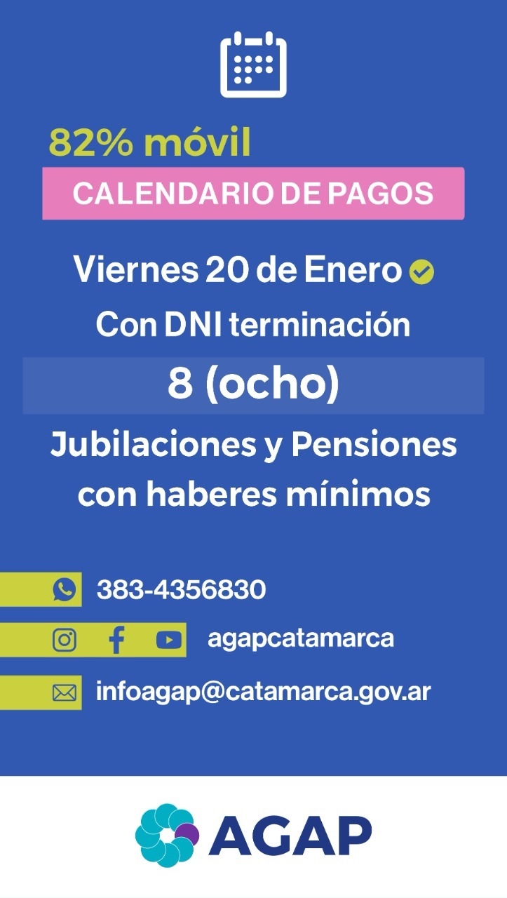 Hoy cobran la Asignación Complementaria Previsional de la AGAP (82% móvil) los jubilados y pensionados con haberes mínimos que tengan terminación de DNI 8.