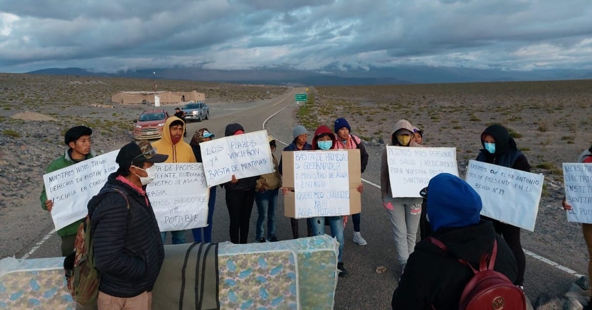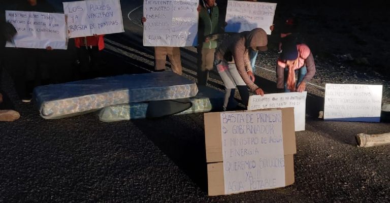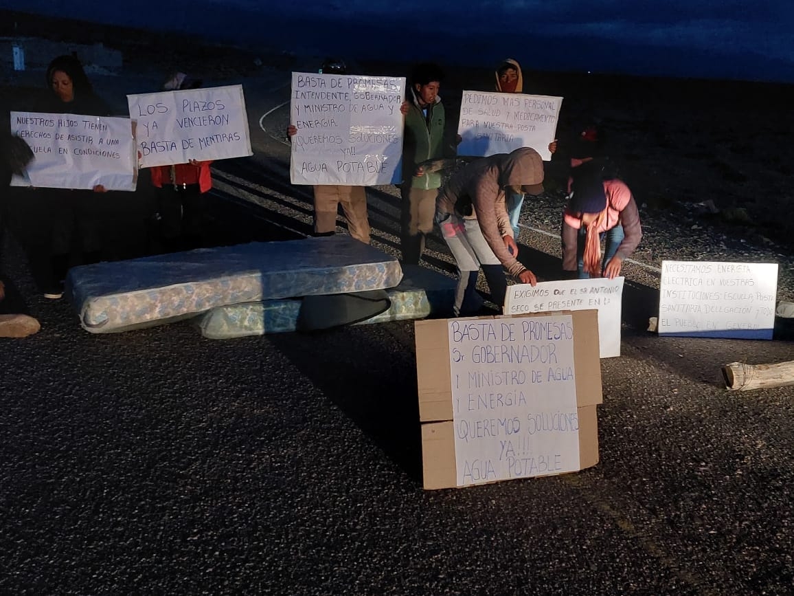También reclamaron por la falta de obras para abastecer de agua potable al pueblo, según escribieron en las pancartas que exhibieron en la ruta.