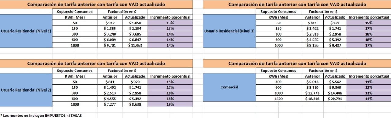 El porcentaje máximo autorizado para actualizar el VAD es del 41,42%, lo que representa un incremento real en el bolsillo de los usuarios de entre el 13% y el 19%, dependiendo del tipo de Usuario (Nivel 1, Nivel 2, o Nivel 3 de la Segmentación Energética dispuesta por el Gobierno Nacional) y de sus respectivos consumos.