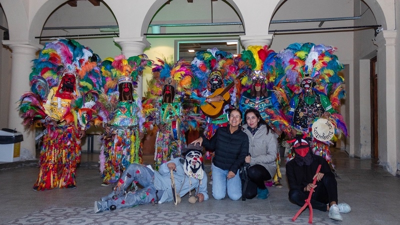 Esta vez, la presentación del documental los trajo a la capital catamarqueña nuevamente. Acompañados por la directora de Cultura del municipio, Patricia Chasampi, los comparseros asistieron a la proyección y, antes y después, realizaron su característico canto ritual en circulo y echando coplas al son de cajas y guitarras.