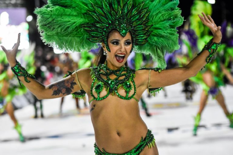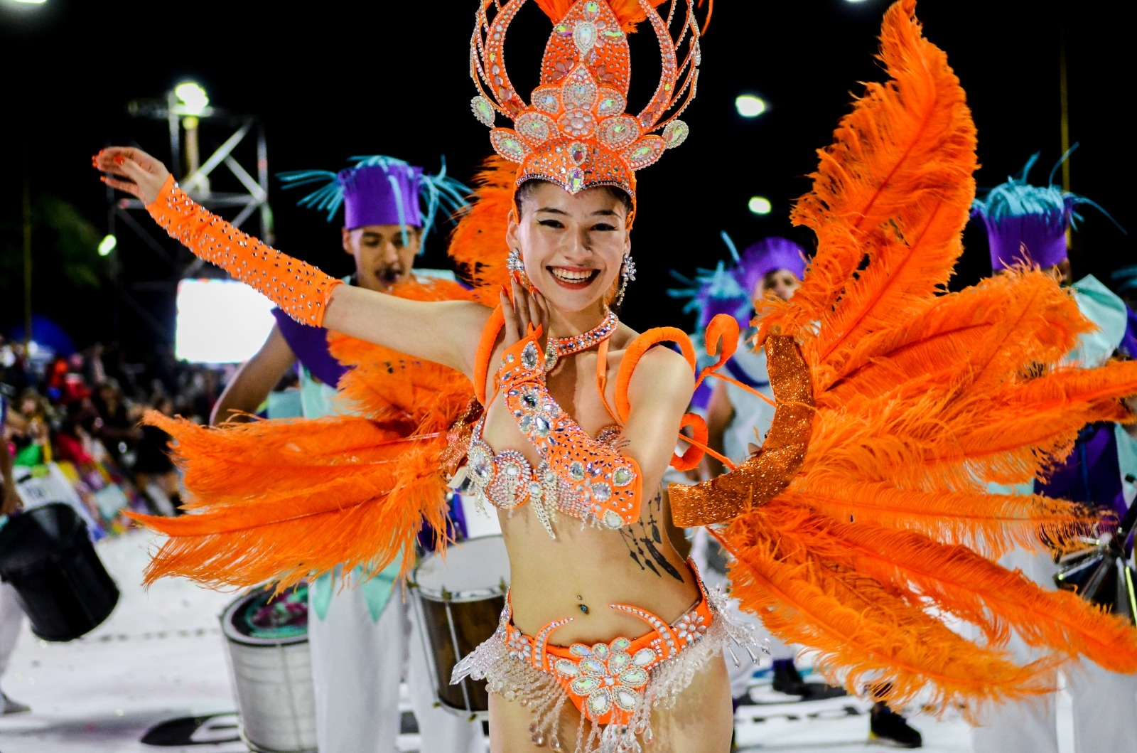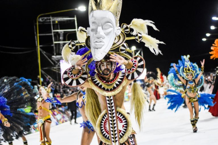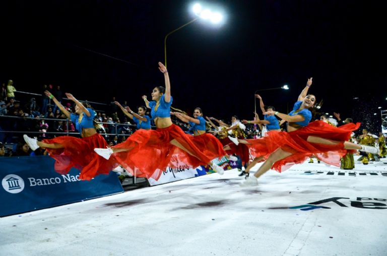 Mari – Mari, la comparsa que llegó desde Gualeguaychú brindó sus imponentes bailes y vestuarios, que trasladó imaginariamente al litoral del país.