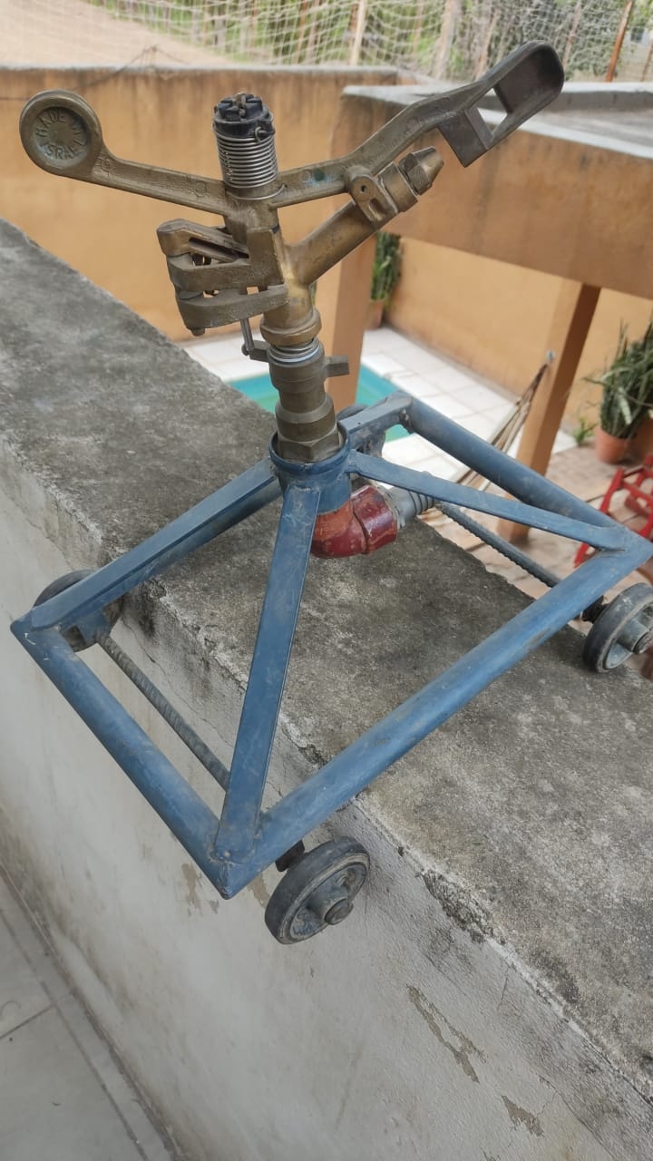 Vendo cañón aspersor con ruedas, con poco uso, de bronce, fabricado en Israel, con una base con cuatro ruedas para su fácil traslado en parques, canchas o sembradíos. El valor a mitad de precio que en Mercado Libre.