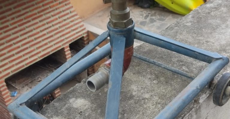Vendo cañón aspersor metálico con ruedas
