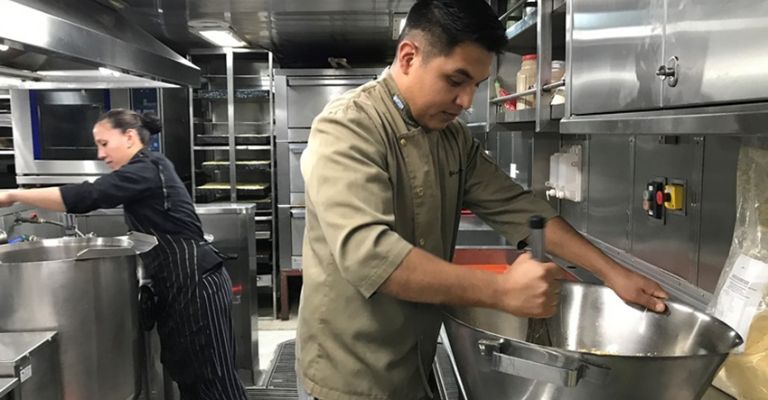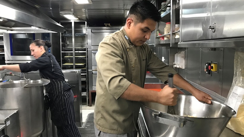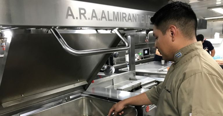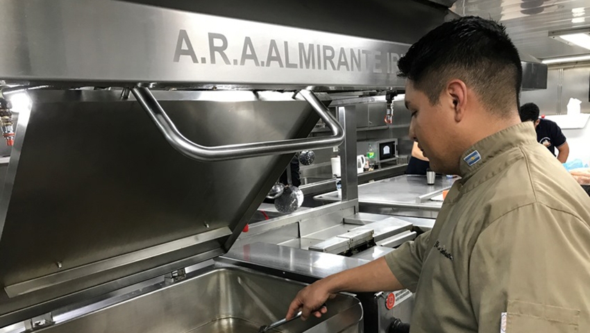 En la cubierta 2 del “Irízar” se encuentra la cocina, donde transcurre la alquimia de las comidas que mantienen en alto el ánimo de sus más de 300 tripulantes. En alguna oportunidad, uno de sus cocineros incursionó en un plato regional del noroeste e hizo locro, plato que recibió las felicitaciones de los comensales que lo degustaron. Fue el locro de Leonardo.
