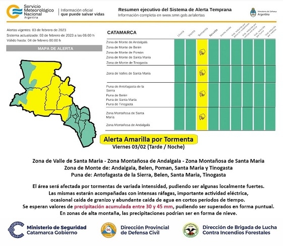 ÁREAS AFECTADAS: Zona de Valle de Santa María; Zona Montañosa de Andalgalá y Santa María; Zona de Monte de Andalgalá, Pomán, Belén, Santa María y Tinogasta; Puna de Antofagasta de la Sierra, Belén, Santa María y Tinogasta.