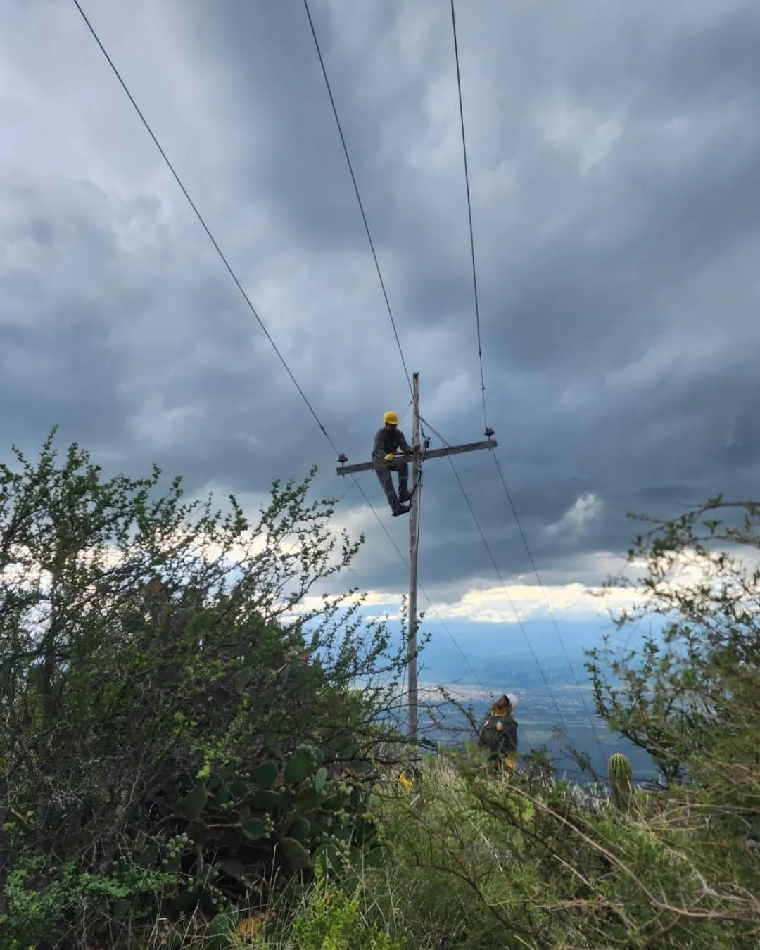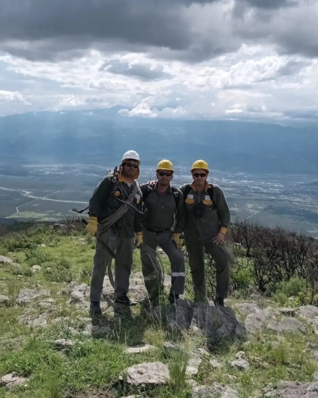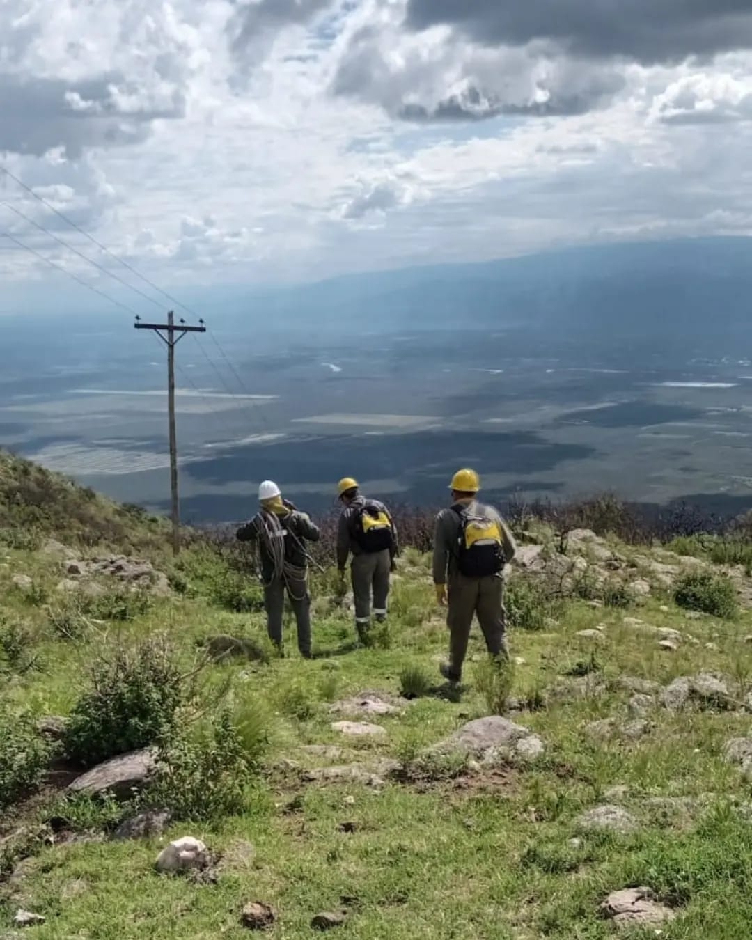 Los riesgos del trabajo de los operarios son permanentes, una caída desde los postes complicaría notablemente su evacuación. Por eso, el trabajo se realiza con todas las medidas de seguridad.